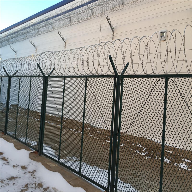 工程案例監(jiān)獄鋼網(wǎng)墻是非常重要的監(jiān)管場所安全防護設(shè)施,由Y型立柱支架、加強型焊接片網(wǎng)、安全防盜連接件和熱鍍鋅刀片刺網(wǎng)組成的強度和安全防御性級別很高的產(chǎn)品?,F(xiàn)被廣泛應(yīng)用在監(jiān)獄、看守所、軍事基地等高安全場所,可在平地安裝,也可在圍墻上二次安裝,極具嚇阻作用,有效防止人為攀爬。采用電鍍、熱鍍、噴塑、浸塑等防腐形式,具有很好的抗腐蝕、抗強風(fēng)、抗剪切、抗沖擊等特點。