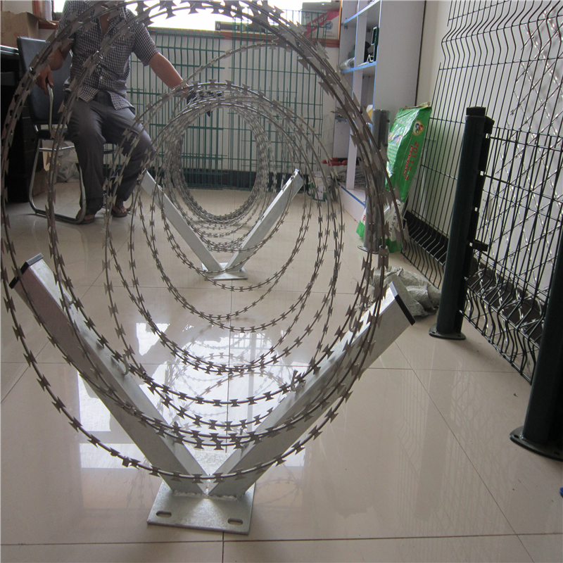 刀片刺網(wǎng)由熱鍍鋅鋼板或不銹鋼薄板沖壓出尖銳的刀片狀,高張力鍍鋅鋼絲或者不銹鋼絲做芯線組合而成的阻絕器材。由于刺網(wǎng)造形獨(dú)特不易觸摸,因而能好的防護(hù)隔離效果。產(chǎn)品的主要材質(zhì)有鍍鋅板和不銹鋼板。