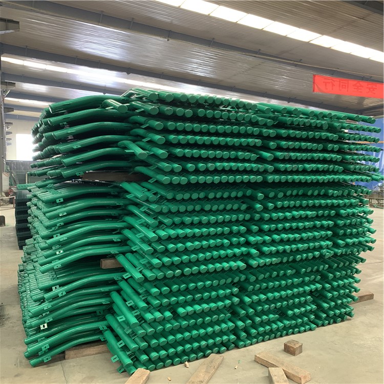 公路隔離網(wǎng)防腐處理:經(jīng)除銹、打磨、鈍化、硫化等工藝后,采用鍍塑處理,色彩為果綠色,鍍層厚度為0.6~1.6mm,鍍粉采用抗老化性能較佳的進口耐候性樹脂粉料,鍍層必須顏色一致,表面光滑,不允許有流掛、滴瘤或多余結塊。鍍件表面應無漏鍍、露鐵等缺陷。