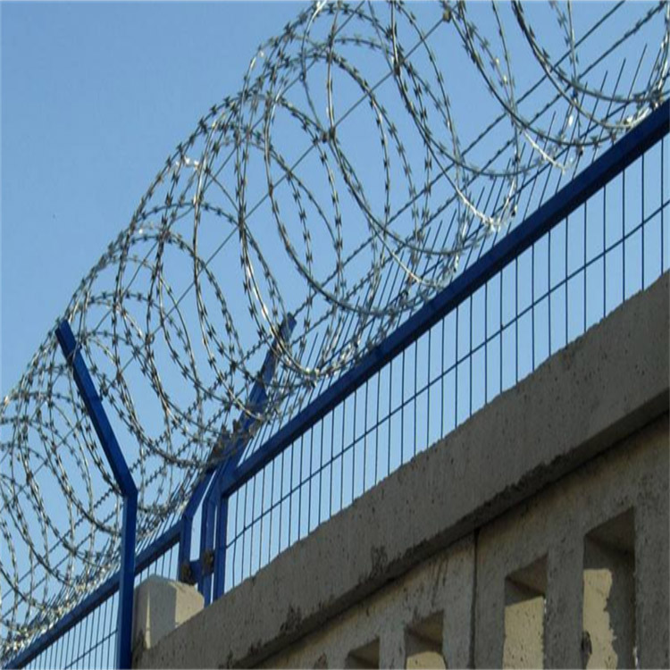 刀刺網(wǎng)直徑600mm。刀刺網(wǎng)排列額度10圈/M。每個卡扣之間的間距為200mm,立柱采用60*60方形國際鋼管,管壁厚度3mm,高度為3400mm,立柱頂端應(yīng)進(jìn)行防水密封處理。