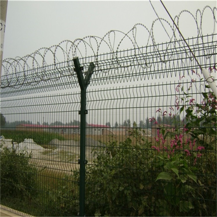 在機(jī)場(chǎng)護(hù)欄網(wǎng)頂部安裝刀片刺籠,很好的增加了安全防護(hù)性能,由V形支柱、焊接網(wǎng)和緊固件組成,不易變形。
