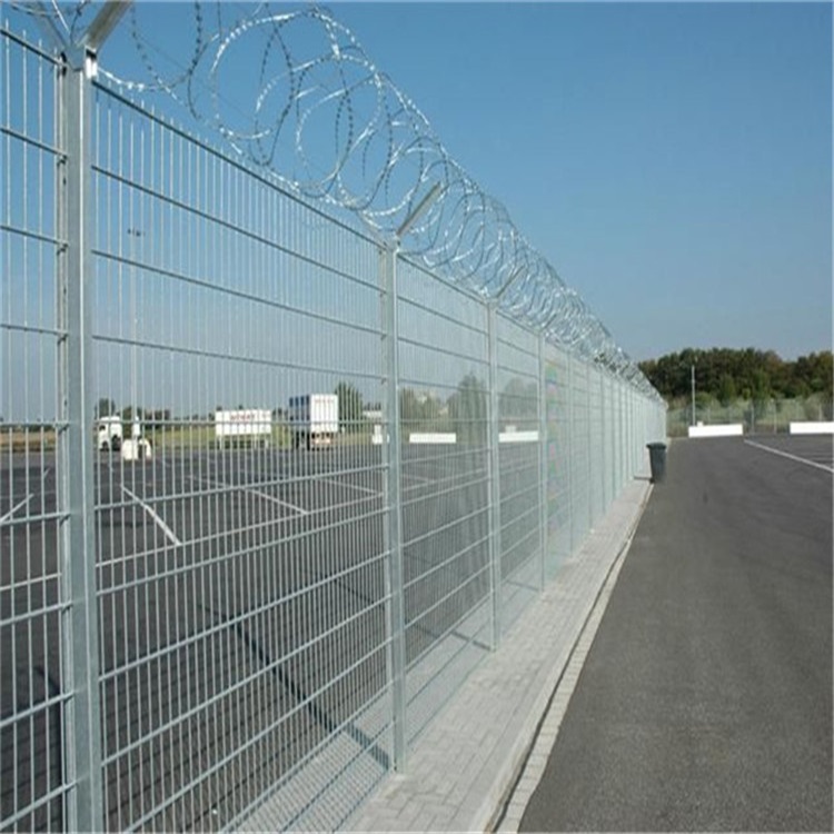 在機(jī)場(chǎng)護(hù)欄網(wǎng)頂部安裝刀片刺籠,很好的增加了安全防護(hù)性能,由V形支柱、焊接網(wǎng)和緊固件組成,不易變形。