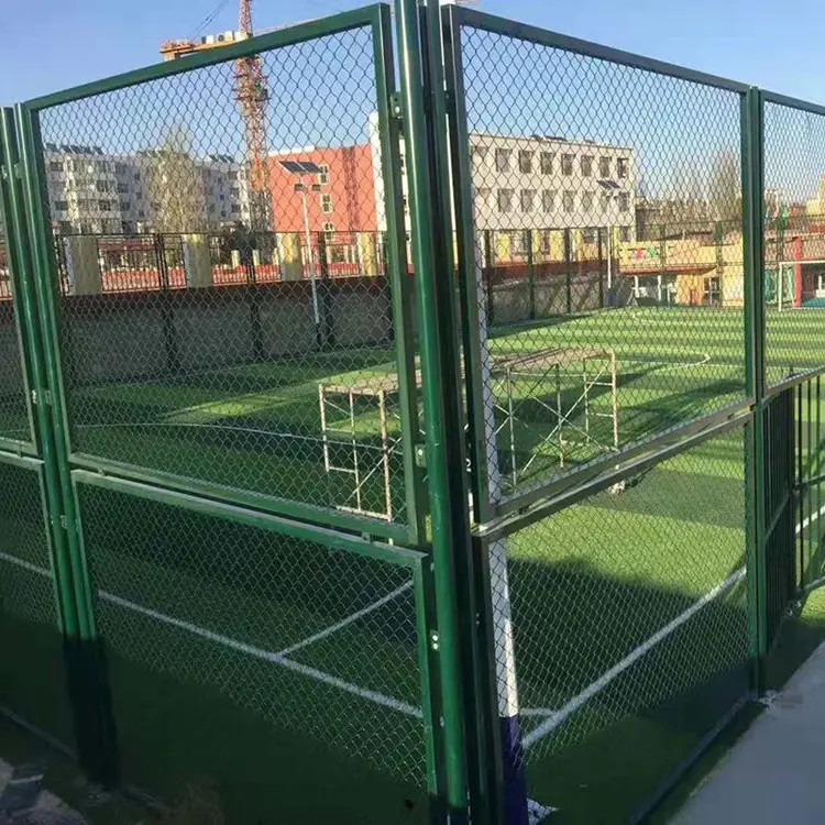 工程案例體育場勾花圍網(wǎng)一般采用包塑絲,立柱、邊框采用噴塑、浸塑處理。