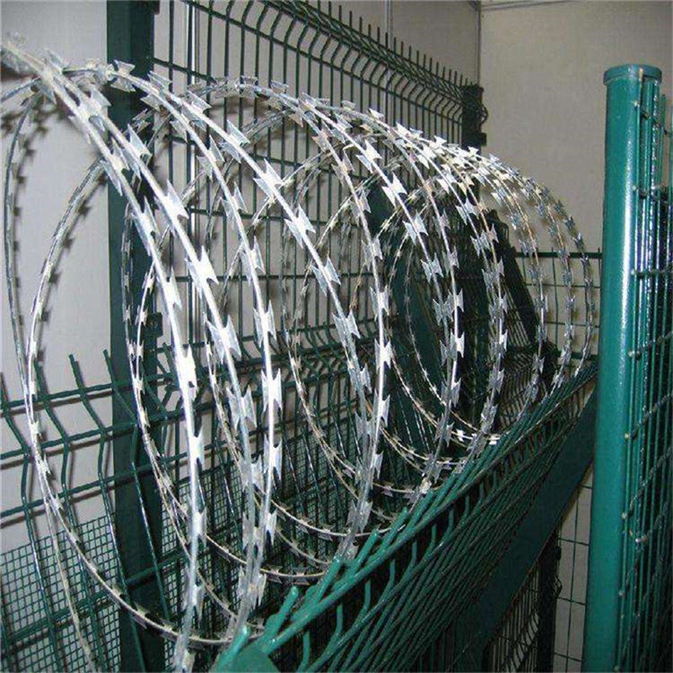 籬笆型刀片刺網(wǎng)是一種刀片刺網(wǎng)做成籬笆型的防護網(wǎng),刀片實用且外形美觀,主要用于圍欄、門窗的防護和軍事防御等長度、直徑可依客戶要求制作。