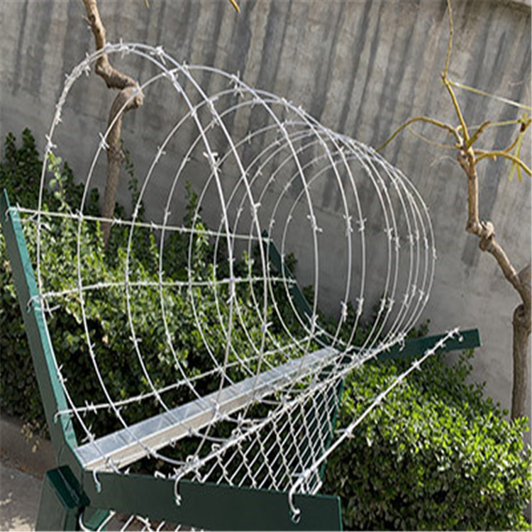 7.刺絲網(wǎng):刺距90~100mm,主絲φ2.8mm,刺絲φ2.4mm;,滾籠直徑:φ500mm