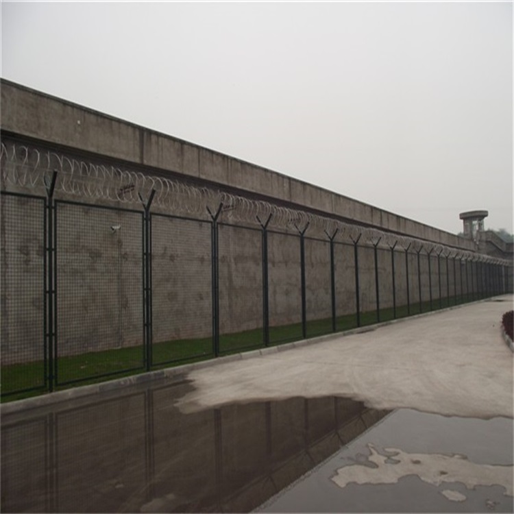 近年來,被廣泛應用在監(jiān)獄,軍事基地等高安全場所。注:如果在監(jiān)獄護欄網(wǎng)頂部加裝刀片刺絲、刀片刺繩后又很好的增強了安全防護性能。
