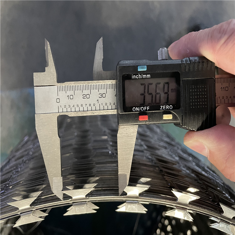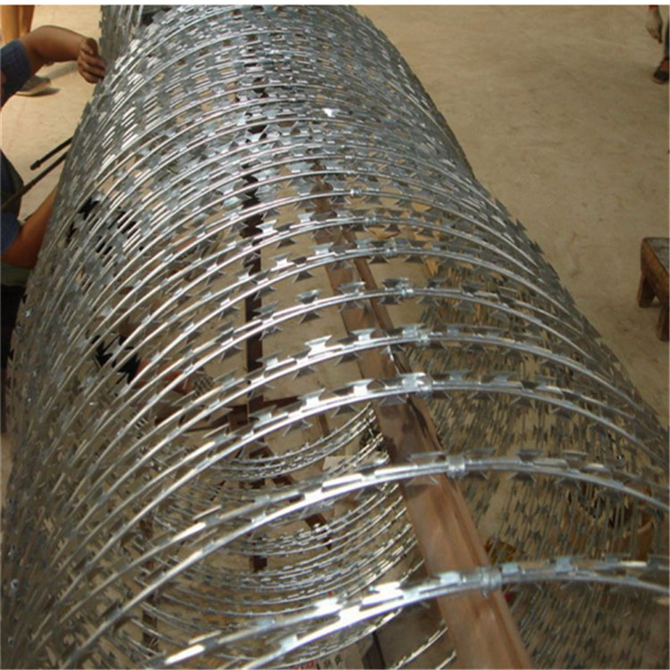 工程案例普通的圍墻經(jīng)常會(huì)有人或動(dòng)物翻越的危險(xiǎn),所以在安全防御方面,就應(yīng)生了刀刺網(wǎng)這種產(chǎn)品,南方人喜歡叫刺絲滾籠,北方人喜歡叫刀刺網(wǎng),也有很多其他叫法,如:蛇腹形(型)刀刺網(wǎng) 滾刀刺,刺刀圈,那它有很多種型號(hào),常用的就是BTO-22刀刺網(wǎng),材質(zhì):熱浸鋅和不銹鋼,型號(hào):BTO-22,芯線:常用2.5mm,厚度:0.5mm,刀片長度:22mm*15mm,刀片間距:34mm。直徑300-1000mm,常用的是500mm的。如果是陰雨多的地方建議選擇不銹鋼刀刺網(wǎng)材質(zhì),其他地方熱浸鋅的就可以。刀刺網(wǎng)安裝在圍墻上通常搭配支架來安裝固定,每3米設(shè)置一個(gè)支架,由刺絲連接卡扣與固定在支架上的縱向拉筋相連接,縱向拉筋與支架的連接采用?2.5mm的冷拔鍍鋅鋼絲繞2圈后擰緊固定,支架底盤用膨脹螺絲固定在圍墻上就可以了。