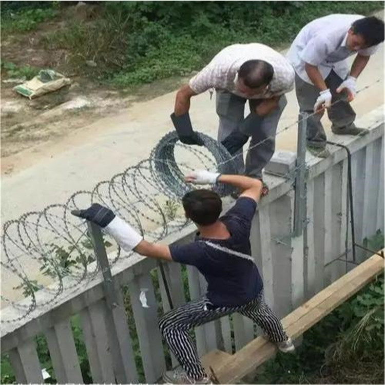 工程案例在鐵路上因?yàn)殍F路沿線都比較長所以都會(huì)用一下比較廉價(jià)的水泥墻來作為圍墻,但是也因?yàn)樗鄩Φ暮裰?,所以做的都不?huì)很高還是會(huì)有人或動(dòng)物翻越的危險(xiǎn)。所以在安全防御方面,就應(yīng)生了刀刺網(wǎng)這種產(chǎn)品,南方人喜歡叫刺絲滾籠,北方人喜歡叫刀刺網(wǎng),也有很多其他叫法,如:蛇腹形(型)刀刺網(wǎng) 滾刀刺,刺刀圈,那它有很多種型號(hào),用在鐵路刺絲滾籠常用的材質(zhì):熱浸鋅和不銹鋼,型號(hào):BTO-22,芯線:常用2.5mm,厚度:0.5mm,刀片長度:22mm,寬度:15mm,刀片間距:34mm,圈徑500mm,如果是陰雨多的地方建議選擇不銹鋼刀刺網(wǎng)材質(zhì),其他地方熱浸鋅的就可以。另外關(guān)于安裝密度問題,我們一般都是按照鐵路相關(guān)文件要求,一米不低于10圈的安裝標(biāo)準(zhǔn)來核算成本,如果允許調(diào)整密度,則價(jià)格也會(huì)隨之變動(dòng)。