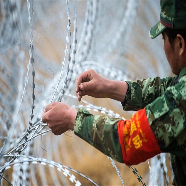 工程案例普通的圍墻經(jīng)常會(huì)有人或動(dòng)物翻越的危險(xiǎn),所以在安全防御方面,就應(yīng)生了刀刺網(wǎng)這種產(chǎn)品,南方人喜歡叫刺絲滾籠,北方人喜歡叫刀刺網(wǎng),也有很多其他叫法,如:蛇腹形(型)刀刺網(wǎng) ,滾刀刺,刺刀圈,那它有很多種型號(hào),常用的就是BTO-22刀刺網(wǎng),材質(zhì):熱浸鋅和不銹鋼,型號(hào):BTO-22,芯線:常用2.5mm,厚度:0.5mm,刀片長(zhǎng)度:22mm*15mm,刀片間距:34mm。直徑300-1000mm,常用的是500mm的。如果是陰雨多的地方建議選擇不銹鋼刀刺網(wǎng)材質(zhì),其他地方熱浸鋅的就可以。刀刺網(wǎng)安裝在圍墻上通常搭配支架來安裝固定,每3米設(shè)置一個(gè)支架,由刺絲連接卡扣與固定在支架上的縱向拉筋相連接,縱向拉筋與支架的連接采用?2.5mm的冷拔鍍鋅鋼絲繞2圈后擰緊固定,支架底盤用膨脹螺絲固定在圍墻上就可以了。