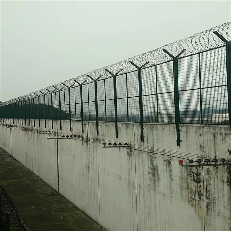 監(jiān)獄鋼網(wǎng)墻主要用于監(jiān)獄、看守所、拘留所、戒毒所、軍事禁區(qū)、邊防線等高安全場(chǎng)所。監(jiān)獄鋼網(wǎng)墻可平地安裝,也可在圍墻上二次安裝,有效防止攀逃。直刺式刺網(wǎng)隔離帶,是用柱體和普通刺繩橫、縱、斜向交叉綁定成刺網(wǎng)隔離帶。主要用于特殊地帶、軍事基地圈護(hù)、溝壕圈護(hù),安裝簡(jiǎn)易,經(jīng)濟(jì)耐用。