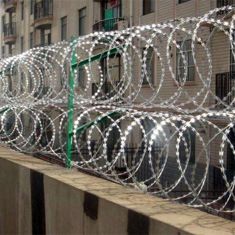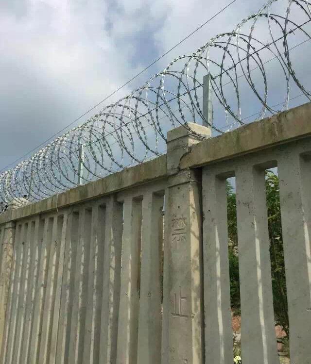 新聞動態(tài)2012年最新《鐵路線路防護(hù)柵欄》[通線(2012)8001]通用參考圖出爐! 文獻(xiàn)規(guī)定:鐵路柵欄一改往日焊接鋼絲網(wǎng)柵欄、刺絲網(wǎng)柵欄等產(chǎn)品,改為防御性更強(qiáng)、壽命更長久的:鋼筋混凝土柵欄+0.5米高刺絲滾籠的防護(hù)柵欄。詳細(xì)內(nèi)容如下: 鋼筋混凝土柵欄:詳見圖紙 0.5米高刺絲滾籠組成:刺絲刺繩+刀刺滾籠+鋼絲+立柱 圖集中:5、刺絲滾籠:(1)刺絲滾籠采用刀片刺繩繞圈后相鄰兩圈每隔120度用刺絲連接卡固定,張開后形成蛇腹網(wǎng)狀,閉合后刀片刺繩卷徑為50cm,張開后每交叉圈安裝間距20cm,直徑不小于45cm。(2)刀片刺繩由沖切鋼板采用機(jī)械軋?jiān)阡摻z上成型,刀刺寬度22mm,刀刃垂直間距15mm,刀刺縱向間距34mm,芯絲直徑為2.5mm。刀片厚度0.5mm的Q195鋼板網(wǎng)沖切制作。芯絲由HPB300 -6.5mm高線鋼絲冷拔加工。(3)刺絲滾籠由刺絲連接卡扣與固定在支架上的縱向拉筋相連接。縱向拉筋與支架的連接采用-2.5mm的冷拔鍍鋅鋼絲繞2圈后擰緊固定。支架設(shè)置在跨度3m防護(hù)柵欄的立柱和跨中位置,其中跨度進(jìn)設(shè)置與立柱上部,支架與防護(hù)柵欄采用支架抱箍連接,對于已經(jīng)安裝金屬網(wǎng)片的防護(hù)柵欄。刺絲滾籠直接采用-2.5mm的冷拔鍍鋅鋼絲或刺絲連接卡扣固定于金屬網(wǎng)橫片和金屬絲上。(4)刺絲滾籠的下緣距離鋼筋混凝土防護(hù)柵欄上緣的垂直距離為0.05m.6.陡坡地段防護(hù)柵欄下檻下部與地面間的間隙采用C25混凝土封閉,寬度180mm,與立柱兩倒平齊,埋入地面以下不小于0.3m.每單元于地面處留移100mm泄水孔。