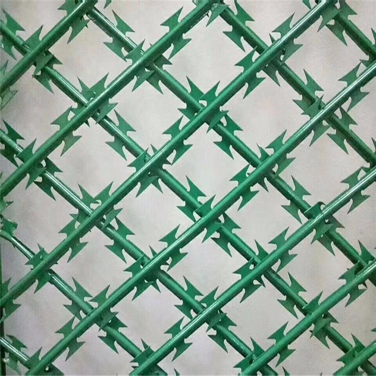 鋼網(wǎng)墻特點(diǎn):網(wǎng)片平整、網(wǎng)孔均勻、焊接牢固、無虛焊無漏焊現(xiàn)象、無塑液流淌現(xiàn)象。刀刺網(wǎng)刀片鋒利、褶褶生輝。銀白與草綠相間,既美觀漂亮,由起到防護(hù)、震懾、防攀爬作用?!驹O(shè)計(jì)壽命為10-15年】。
