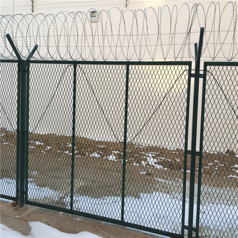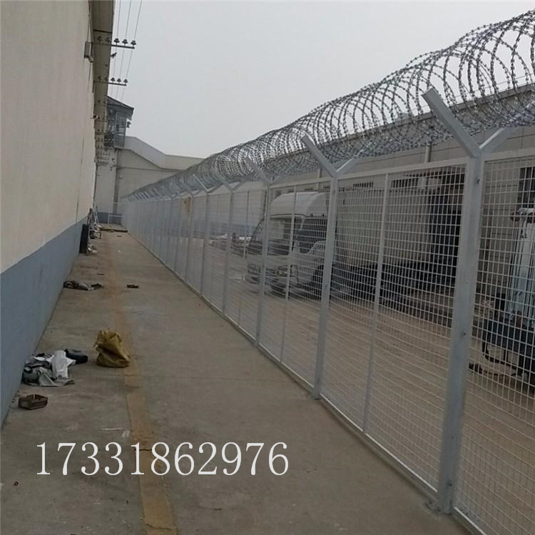監(jiān)獄護(hù)欄網(wǎng)又稱作“Y型安全防御護(hù)網(wǎng)”,是由V型支架立柱,加強(qiáng)型焊接片網(wǎng),安全防盜連接件和熱鍍鋅刀片刺籠組成強(qiáng)度和安全防御性級(jí)別很高。近年來,被廣泛應(yīng)用在監(jiān)獄,軍事基地等高安全場(chǎng)所。注:如果在監(jiān)獄護(hù)欄網(wǎng)頂部加裝刀片刺絲、刀片刺繩后又很好的增強(qiáng)了安全防護(hù)性能。采用電鍍、熱鍍、噴塑、浸塑等防腐形式,具有很好的抗老化、抗曬、耐候等特點(diǎn)。其產(chǎn)品造型美觀、花色多樣,既起到圍欄作用,又起到美化作用。由于具有安全性高、防攀爬能力好,網(wǎng)片連接方式采用特制SBS緊扣件,有效防止人為的破壞性拆卸,橫向四道折彎加強(qiáng)筋,使網(wǎng)面強(qiáng)度顯著增加。