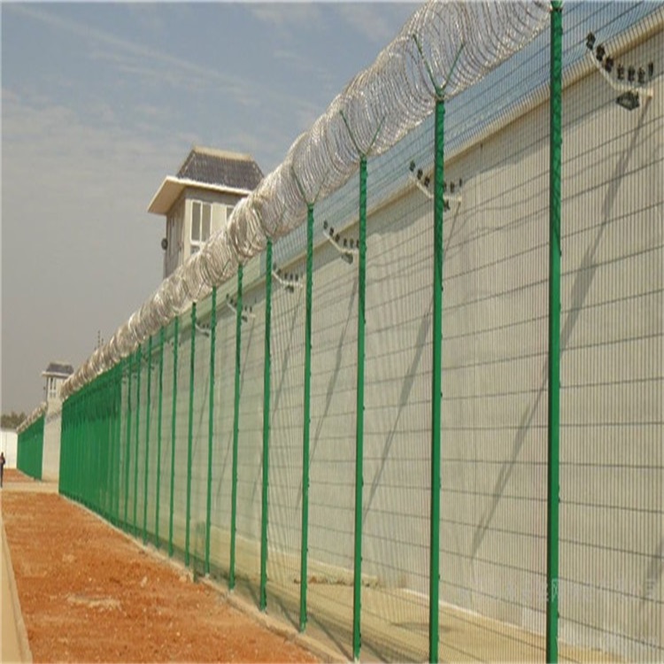 監(jiān)獄護(hù)欄網(wǎng)、女子監(jiān)獄鋼網(wǎng)墻、監(jiān)獄圍欄這三個(gè)叫法實(shí)際上就是一種產(chǎn)品,每個(gè)地區(qū)的叫法按不同,都是監(jiān)獄看守所安裝的一種防護(hù)網(wǎng),材質(zhì)一般采用Q195低碳鋼絲焊接成所需尺寸的網(wǎng)片大小,一般每片規(guī)格有2米x2.5米,2.5米x3米,1.8米x2米等各種尺寸,客戶可根據(jù)要求選購(gòu),成型的網(wǎng)片一般都是沒(méi)有經(jīng)過(guò)表面處理的黑片,有些是需要焊接邊框的,有些是直接焊成雙絲的,在經(jīng)PVC浸塑處理,PVC浸塑是通過(guò)加熱浸塑液放入監(jiān)獄護(hù)欄網(wǎng)、監(jiān)獄鋼網(wǎng)墻、監(jiān)獄圍欄的黑絲網(wǎng)片及立柱使之冷卻后塑料包覆在護(hù)欄網(wǎng)表面。這種工藝有無(wú)需模具、加工成本低、成型容易、具有豐富的色彩,良好的防護(hù)性,優(yōu)異的耐寒保溫性以及抗酸堿性等特點(diǎn)被廣范使用,顏色可選草綠色,墨綠色這兩款是最常用的。