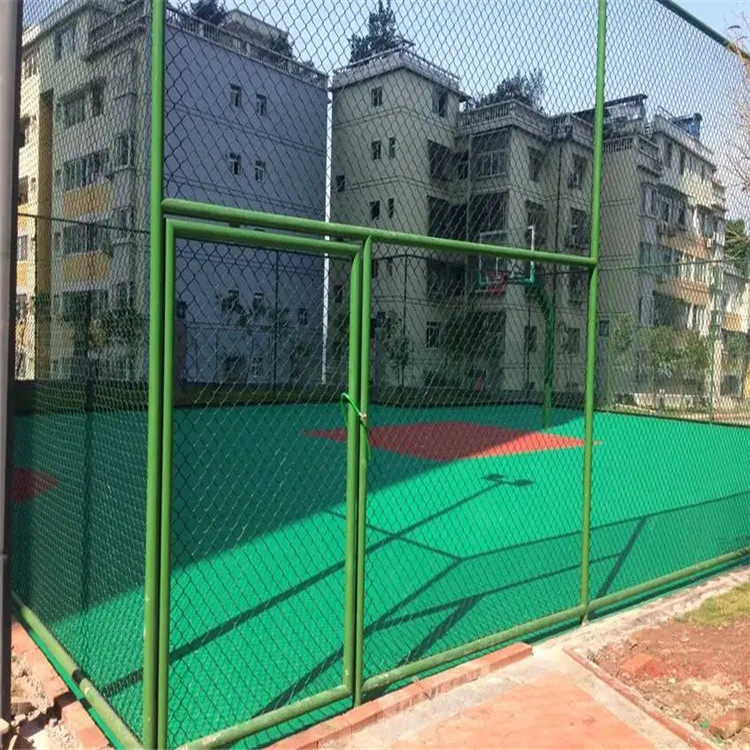 6球場(chǎng)圍網(wǎng)的框架:要結(jié)實(shí)耐用,不能有凸出部分,門(mén)把手、門(mén)鎖都要隱蔽起來(lái),避免給打球人造成傷害。