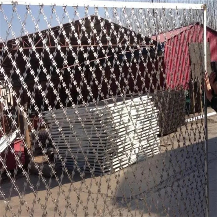 新聞動態(tài)刀刺網(wǎng)是一種近年發(fā)展起來的防護(hù)、隔離能力較強(qiáng)的新型防護(hù)網(wǎng)產(chǎn)品。刀刺網(wǎng)它采用鋼板沖壓成型包附于熱鍍鋅鋼絲之上,由鍍鋅鋼板或不銹鋼薄板做刀片,高張力鋼絲做芯線組合而成的。鋒利的刀型刺由雙線扣裝后成蛇腹?fàn)?,既美觀又讓人不寒而栗。起到了很好的阻嚇作用。
