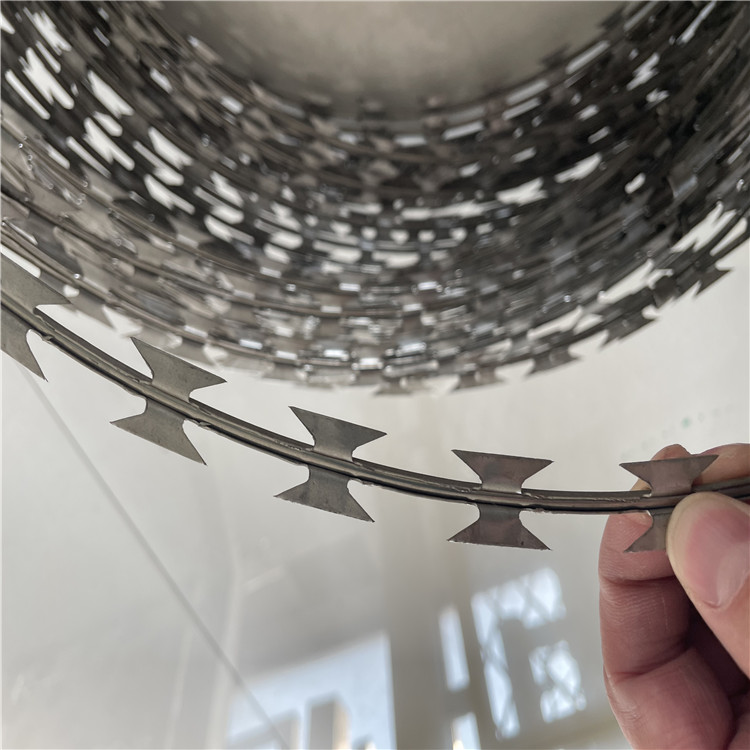 刀片刺網(wǎng)又名刮刀型刺絲,是一種近年發(fā)展起來的防護(hù)、隔離能力較強(qiáng)的新型防護(hù)網(wǎng)產(chǎn)品。鋒利的刀型刺由雙線扣裝后成蛇腹?fàn)?既美觀又讓人不寒而栗。起到了很好的阻嚇作用。同時該產(chǎn)品具有美觀、防阻效果好、施工便利等優(yōu)點(diǎn)。