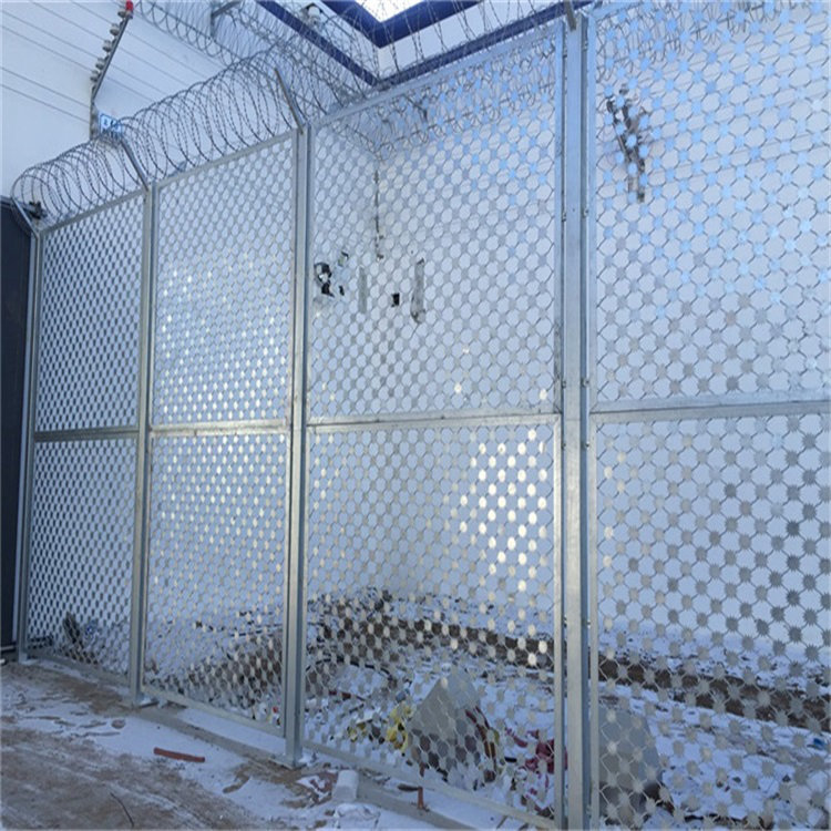 監(jiān)獄鋼網(wǎng)墻的作用一個是可以防止非法分子翻越攀爬,一個是可以代替普通的紅磚水泥圍墻,可以看到監(jiān)獄內(nèi)外部的情況,無視力阻礙,而且美觀大方,可以與周圍環(huán)境相協(xié)調(diào),給人一種深入大自然的感覺。最近咨詢監(jiān)獄梅花刺片隔離網(wǎng)的比較多,那今天對監(jiān)獄梅花刺片隔離網(wǎng)做一下產(chǎn)品介紹。下圖為監(jiān)獄梅花刺片隔離網(wǎng)實拍