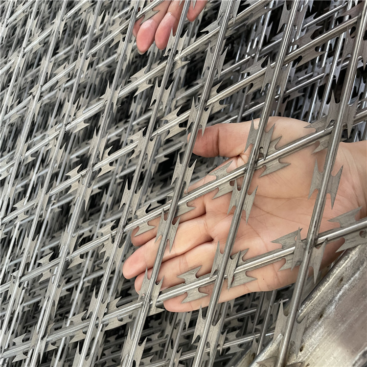 新聞動態(tài)焊接刀片隔離網(wǎng)的防攀爬效果如何?首先來看下制作工藝,是先把刀片刺繩成型之后裁成所需網(wǎng)片直條的長度經(jīng)網(wǎng)片機焊接成刀刺網(wǎng)片,材質:芯線優(yōu)熱鍍鋅鋼絲;板材為熱鍍高鋅或者不銹鋼板材。也可以表面噴塑或者涂塑,以達到更好的防腐耐酸堿的作用,延長使用年限??讖酱笮。?X10、10x15、10x20cm(其他網(wǎng)孔可以根據(jù)客戶需求定做)。一般焊接成菱形孔,因其刀片鋒利造形獨特手不能握腳不能蹬,因而能達到很好的防護隔離效果。材質選擇要根據(jù)當?shù)貧夂?,潮濕的地區(qū)應當選擇不銹鋼材質的防腐效果更佳。具有嚇阻、防翻越等效果,材質堅硬,高強度,高張力,造型設計獨特,不宜觸摸,因而能達到防護隔離效果。