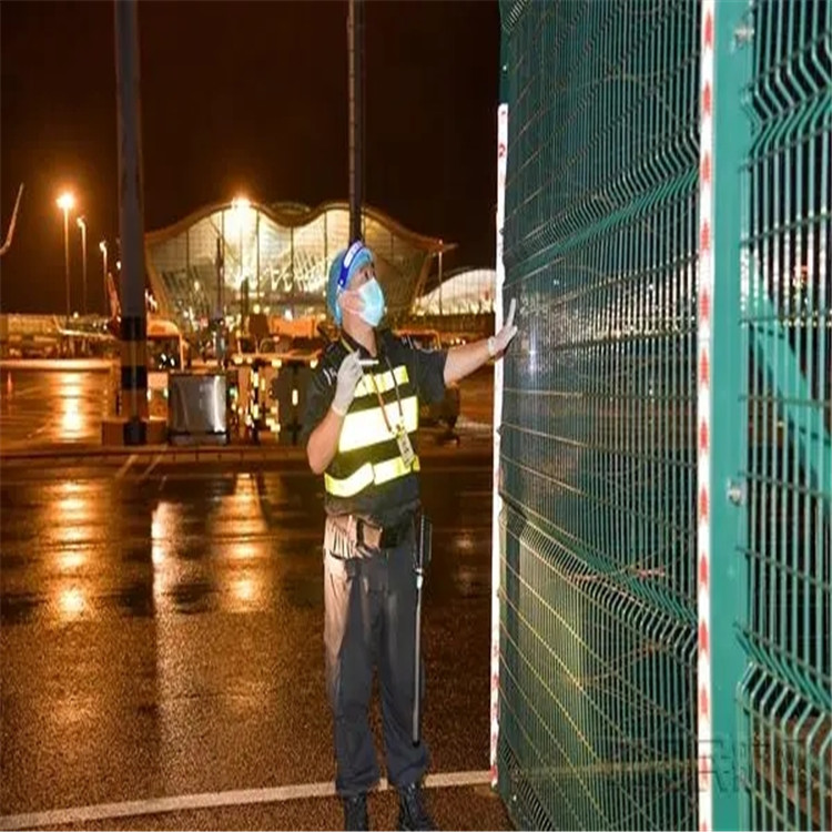 常用規(guī)格:整體高度2.5米,寬度3米,立柱采用60×60mm方管或圓管,網片采用4.0-6.0mm低碳鋼絲焊接,網孔一般為50×100mm,50×200mm及60×120mm等。表面處理一般采用鍍鋅+噴塑的雙層防腐處理方式,一般每6米或者9米設置一根斜撐來增加穩(wěn)固性。根據安全防護的等級,機場圍界的規(guī)格參數(shù)是可以調整的,機場最外圍的隔離網規(guī)格參數(shù)可以下調,還有就是根據預算來調整。飛行區(qū)技術等級不同的機場,圍界技術標準應有所區(qū)別,支線機場和通用航空機場若地處村落地帶時,建議可以采用刺鐵絲網,編織網等造價低防腐年限在5年左右的圍界;在人口較為稠密的地區(qū),飛行區(qū)圍界的安全等級和使用壽命的要求則應提高。