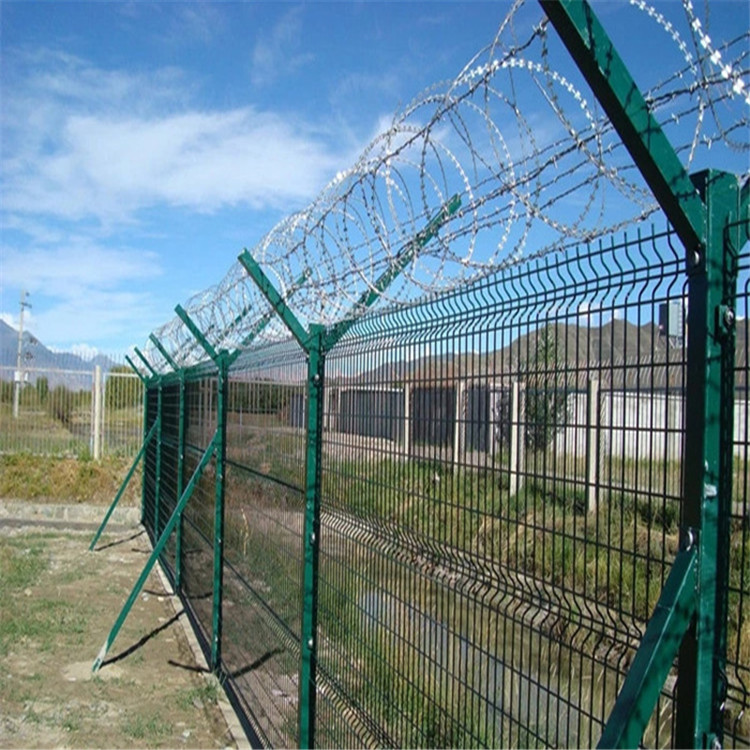 新聞動(dòng)態(tài)Y型安全防御護(hù)網(wǎng)可用作監(jiān)獄鋼網(wǎng)墻也可用作機(jī)場(chǎng)圍界,是由V型支架立柱加強(qiáng)型焊接片網(wǎng),安全防盜連接件和熱鍍鋅刀片刺網(wǎng)組成強(qiáng)度和安全防御性級(jí)別很高。被廣泛應(yīng)用在監(jiān)獄,軍事基地等高安全場(chǎng)所。立柱為60X60的矩形鋼,頂端焊有V型之架,或者采用70mmX100mm的掛式連接立柱。立柱高度2.5米成Y字型,在2米高的網(wǎng)片上邊架上直徑50cm或60cm的刀刺網(wǎng),整體下來(lái)高度2.5米,是無(wú)法攀爬或翻越的,在孔徑選擇上邊一般5cmx10cm的就可以了。