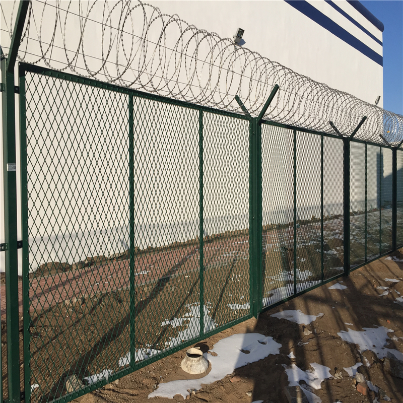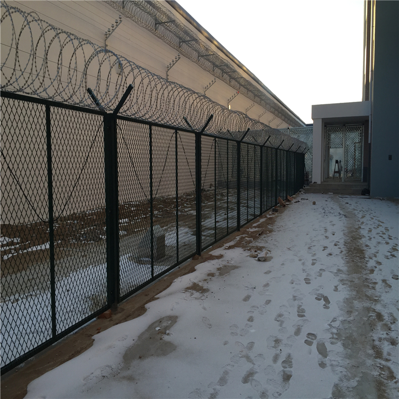 監(jiān)獄金屬隔離鋼網(wǎng)墻 看守所焊接刀片隔離網(wǎng)是非常重要的監(jiān)區(qū)安全防護(hù)設(shè)施,是由焊接鋼網(wǎng)加蛇腹形刀刺網(wǎng)組合而成。產(chǎn)品具有結(jié)構(gòu)新穎、堅(jiān)固緊密、網(wǎng)面平整、網(wǎng)孔均勻、刀鋒銳利、防攀爬、耐腐蝕性強(qiáng)等特點(diǎn)。Y型架上邊架蛇腹型刀刺:由熱鍍鋅鋼板或不銹鋼薄板沖壓出尖利的刀片狀,高張力鍍鋅鋼絲或者不銹鋼絲做芯線組合而成的阻盡器材。刀刺直徑采取50-60厘米,刀型整潔、刀片鋒利、排列均勻致密、連接堅(jiān)固、防腐才能強(qiáng),可能達(dá)到防攀越、防拆卸更高保險(xiǎn)等級(jí)。