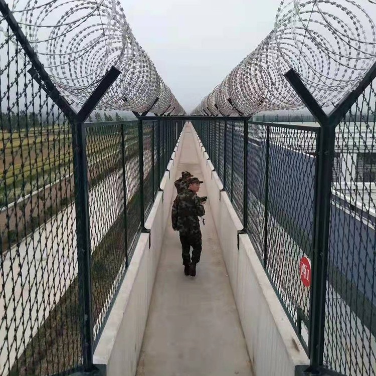 新聞動(dòng)態(tài)監(jiān)獄金屬鋼網(wǎng)墻是一種新型的安全圍欄,又稱(chēng)“Y型安全隔離網(wǎng)”通常在圍欄上方裝有刺籠刀片,能有效的防攀爬和人為破壞,防止囚犯逃逸、巡視檢查方便。被廣泛應(yīng)用在監(jiān)獄、看守所等軍事基地等高安全場(chǎng)所。在監(jiān)獄金屬鋼網(wǎng)墻頂部安裝刀片刺籠有很好的增加了安全防護(hù)性能。可以平地安裝,也可以在圍墻上二次安裝。